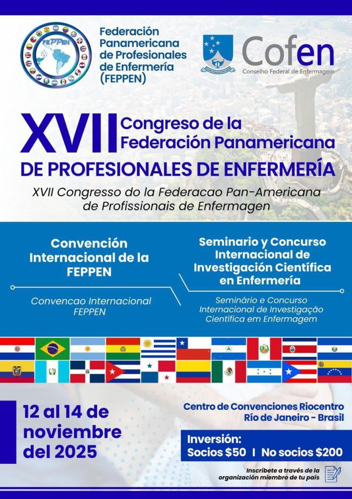 📅 12 al 14 de noviembre de 2025 📍 Río de Janeiro, Brasil 🌎 Tema central: “El poder de la Enfermería para generar cambios en América Latina y el Caribe”. Este encuentro internacional reunirá a profesionales de enfermería de toda la región en la Convención Internacional de la FEPPEN y el Seminario y Concurso Internacional […]